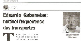 Dando mais uma volta em viagem do tempo, nestes apontamentos de recuperação da memória coletiva que por vezes anda arredia do conhecimento oficial e até geral da causa felgueirense, procuramos dar mais um contributo com mais um dos diversos exemplos possíveis, desta vez resgatando para a lembrança pública um dos homens que em tempos idos se salientaram na afirmação de Felgueiras. Conforme fica escrito no artigo vindo a público no Semanário de Felgueiras, em sua edição impressa de 12 de maio, de cuja página para aqui transpomos imagem da respetiva coluna e o correspondente texto, ilustrado com algumas imagens de arquivo do autor: