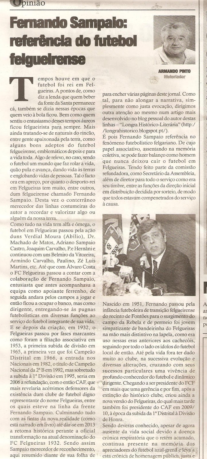 entre outros, dum felgueirense chamado Fernando Sampaio. Desta vez o